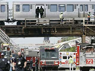 ZeroShibai.com's reporters were on the scene of several evacuations of rail transit passengers during last Friday's power outage. As you can see from these exclusive photos, the elevated nature of the entire rail system made rescue efforts particularly challenging. Tens of thousands of evening rush hour rail riders ran out of patience waiting for overtaxed rescue personnel to escort strandees one by one down fire rescue ladders and in rescue cranes. As a result, many riders chose to walk a half-mile along the emergency walkways to the nearest train station and made their way down the emergency exit stairways.