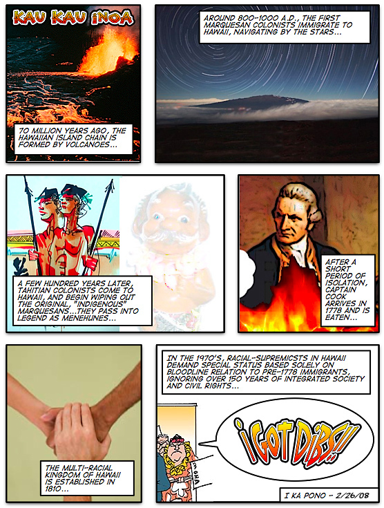 It Used to Be That Racism Was Not Liking People of Other Races Because of Their Race; Now, the Thought Police Say You're a Racist for Even Discussing Race Relations and OHA; 'Pilau' Political Correctness Washes Ashore in Hawaii Nei "Cow Inoa": Milking a Controversy and Revisiting Two Weeks of Cartoon Politics