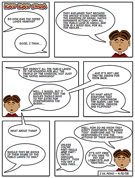 DANGER: Thoughtful and Lighthearted Cartoon Ahead; Proceed with Caution The Debut of "Kau Kau Inoa" by I Ka Pono; Haunani Should Sit Before Reading This!