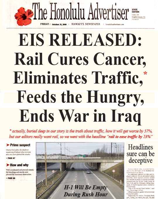 When Headline Writers Run Amok With Just Days Before the Rail Vote, Editors of the Honolulu Advertiser Abandon Pursuit of Truth and Simply Invent the News . . .
