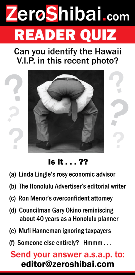 Have You Brushed Up On Current Events? Attention Hawaii News Junkies and Celebrity Watchers: Do You Recognize this Newsmaker? The ZS Reader with the First Correct Answer Will Receive a FREE Subscription to ZeroShibai.com PLUS Fame, Fortune and Everything That Goes With It