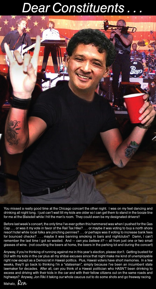 If you really want to help Hawaii politics, you have to move beyond comic imagery and mocking language and encourage your followers to understand THE ISSUES and how they want to solve them. I hope you take this into consideration in your upcoming blog posts and website updates. Demonizing politicians will only encourage the people of Hawaii, especially the younger generation, to loathe politics. I hope this is not your intention, but know that this is what you are doing. Best, Erin Kealoha"