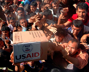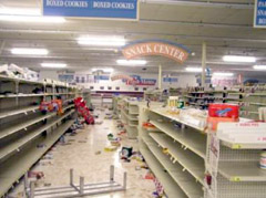 In the meantime, on the day of the attacks, Hawaii residents learn of the docks being closed. They know what this means and they rush to the local supermarkets and 'big box' stores to stock up. Within a few short hours everything edible is gone from the stores. Latecomers are in a panic and it doesn't take long until violence breaks out – food riots, haves vs have nots, armed groups roving the streets looking for food.
